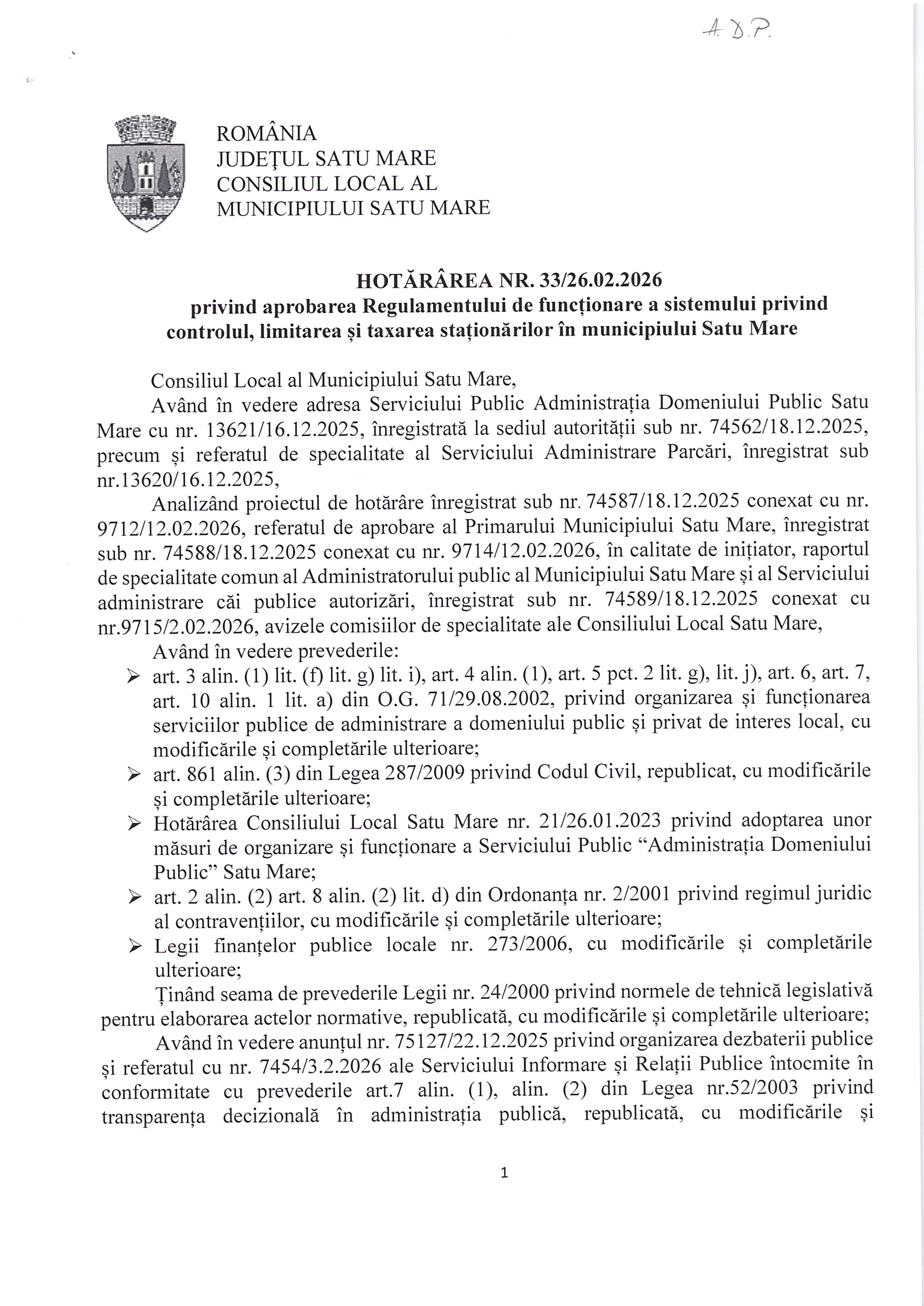 HCL 33/ 2026- regulament parcari